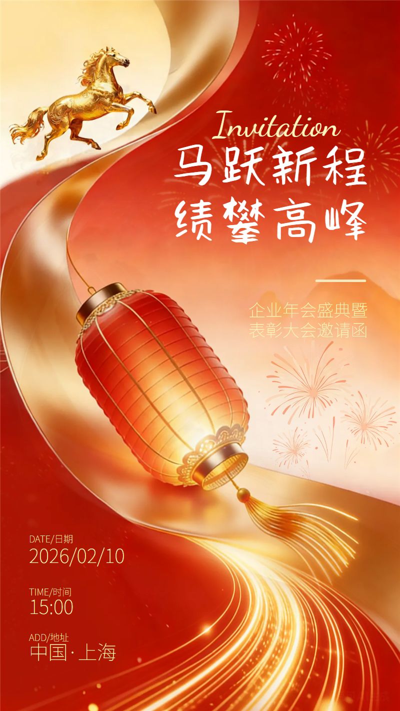 红金风马年春节邀请函